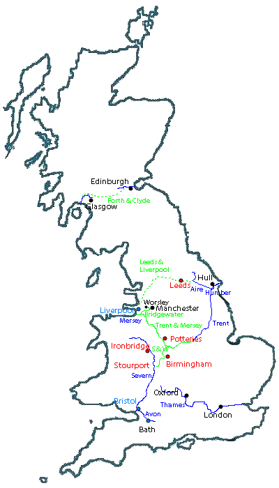 - the Staffordshire and Worcester canal linking the Trent and Mersey Canal to the Severn, reaching it in the new town of Stourport, and leading to the SW and the harbour town of Bristol.