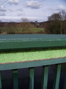- The view from the Aire bridge showing the tower of the abbey