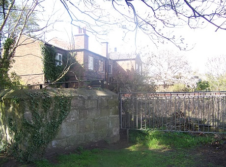 - The arched entrance in the distance with gun embrasures to defend the precincts, and the mill - the brick building in the middle to the right of entrance; the river flows to the left beyond the buildings.