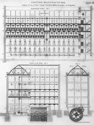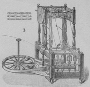 - the cotton spinning machine invented by Arkwright (early 19th century engraving after the drawing in his 1769 patent)