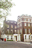 Grosvenor Square, part of the Grosvenor estate (the family later becoming Dukes of Westminster). Sir Thomas Grosvenor, Bart, by his marriage to a London heiress, Mary Davies, in 1677, obtained large estates, one in Mayfair (which was developed in the 18th century) and one to the South (which was developed as ‘Belgravia’ in the 1820s, from Belgrave in Leicestershire where the Grosvenors had an estate). Their son Sir Richard Grosvenor, a Whig MP for Cheshire, obtained an act to grant leases in 1710, and the accession of the Hanover dynasty in 1714 offered him a group of now powerful Whig associates. In addition to Grosvenor Square, he designed surrounding streets, Davies St and Audley St having names derived from his mother’s family. There were some attempts at architectural unity. n°9 and n°38 survive.