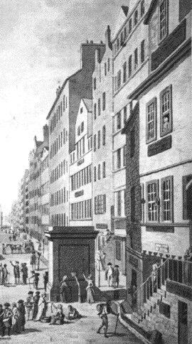 In Edinburgh, the inhabitants were crowded into buildings from four to fourteen storeys high. Each floor had a tiny apartment rented to a family. The stairs used by the tenants were narrow and squalid. It was necessary to take care not to trip over the body of a vagabond or a drunk asleep on the stairs. Rich and poor lived together under the same roof. The middle classes took over the fifth or sixth floors and left the lower and upper floors to the workers and craftsmen. Very often, the ground floor was taken up by shopkeepers. Large colourful signs were hung from the outside of the building to attract customers.