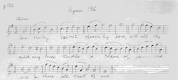 The choir are singing this Wesleyan hymn to one of several familiar, interchangeable, twentieth-century tunes. The original tune may be heard in Love divine (2).