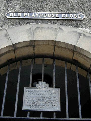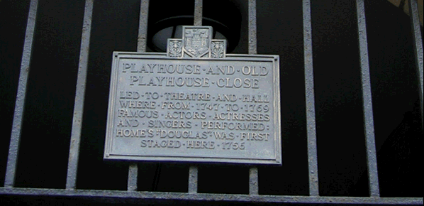 - Detail of the plaque in Playhouse Close, with a reference to the performance of Douglas.