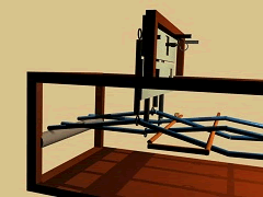 A computer model of a Jacquard loom; such looms were invented in Lyons to weave motifs in silk in the 18th and early 19th centuries, and used in England.