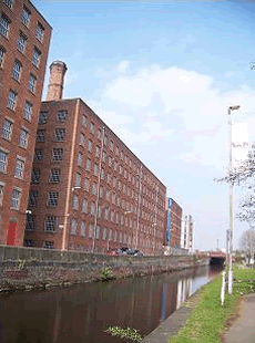 The Ancoats mill is on the Rochdale canal (late 18th century); one of the locks can be seen on the left - canals were essential to industry.