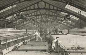You may see such machines still working at the Museum of Science and Industry in Manchester (see particularly the section « The world’s first industrial city »), where industrial history can now be studied, and at New Lanark Mills in Scotland.