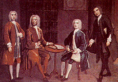 - Painting by William Hoare (1707-92) showing four leading figures of Bath, among whom Ralph Allen (seated, left) and John Wood the Elder (standing, right). The painting is now in the study of N°1, Royal Crescent.