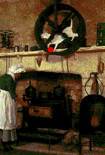 The spits were kept in motion by dogs turning in a wheel, called “turnspit dogs”. Recipes would have included such delicacies as anchovies with Parmesan cheese or syllabub.