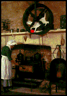 Spits used to cook roasts were kept in motion by a mechanism linking them to a wheel in which a dog was placed with a burning coal under its paws, obliging the dog to run constantly so as to avoid being burnt.