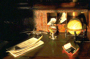 To the right of the entrance, you will visit the study in which a gentleman may do some reading, smoke a logn clay pipe, drink his port, play cards or write his letters.