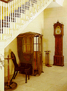 A sedan chair is placed under the staircase of the entrance hall (“sedan” comes from the Latin “sedere” - to be seated).