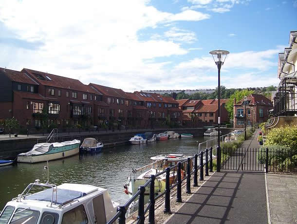 - to the South East beyond the bridge the Redcliffe area is also built.