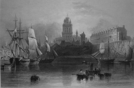 - View towards the Redcliffe basin (the same sightline as in Jackson’s painting mentioned above), an engraving from a drawing by W.H.Bartlett, for The Ports, Harbours, Watering Places and Picturesque Scenery of Great Britain (1842).